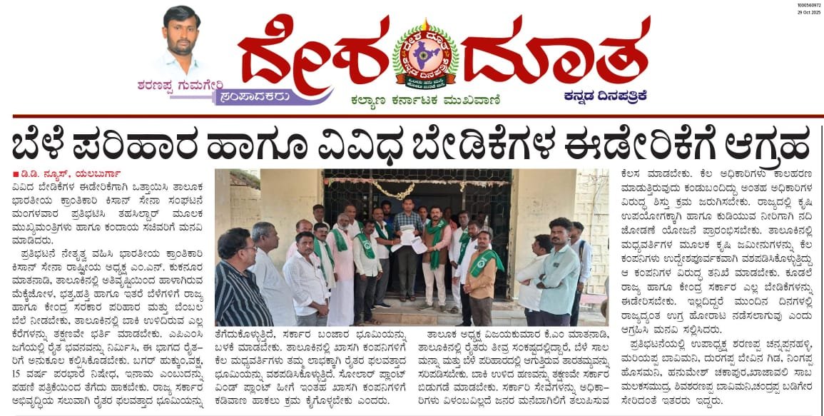 • ಸುವರ್ಣಸೌಧ ಮುತ್ತಿಗೆ ಕಾರ್ಯಕ್ರಮ ಇದೇ 19ನೇ ತಾರೀಕು , • ಡಿಸೆಂಬರ್ 11ಕ್ಕೆ ಸುವರ್ಣ ಸೌಧ ಮತ್ತಿಗೆ , • ಬೇಡಿಕೆಗಳನ್ನು ಈಡೇರಿಸಲು ಮನವಿ , • ರಸ್ತೆ ದುರಸ್ತಿ ಒತ್ತಾಯಿಸಿ ಪ್ರತಿಭಟನೆ.., • ಸಾಲುಮರದ ತಿಮ್ಮಕ್ಕನ ನೆನಪಿಗಾಗಿ ಸಸಿಗಳನ್ನು ನಡಲಾಯಿತು , • ವಿವಿಧ ಬೇಡಿಕೆಗಳನ್ನು ಈಡೇರಿಸಲು ಮೈಸೂರಿನಲ್ಲಿ ಜಿಲ್ಲಾಧಿಕಾರಿಗಳಿಗೆ ಮನವಿ ಸಲ್ಲಿಸಲಾಯಿತು , • ವಿವಿಧ ಬೇಡಿಕೆಗಳನ್ನು ಈಡೇರಿಸಲು ತಾಲೂಕು ಕಚೇರಿ ಮುಂದೆ ಪ್ರತಿಭಟಸಿ ಮನಿವೆನ್ನು ಸಲ್ಲಿಸಲಾಯಿತು , • ಭ್ರಷ್ಟ ಅಧಿಕಾರಿಗಳ ವಿರುದ್ಧ ಪ್ರತಿಭಟನೆ.., • ಶುಂಠಿ ಬೆಳೆದ ರೈತರು ಆತಂಕ... ಬೆಲೆ ಸಿಗದೆ ಕಂಗಾಲು , • ಸೂಗೂರು ಮತ್ತು ಎಚ್ ಡಿ ಕೋಟೆ ತಾಲೂಕಿನಲ್ಲಿ ನಿಲ್ಲದ ಪ್ರಾಣಿ, ದಾಳಿ ದಾಳಿ , • H. D. Kote , • ಮೈಸೂರ್ , • ಎಚ್ ಡಿ ಕೋಟೆ ಮತ್ತು ಸೋಗುರು ತಾಲೂಕಿನಲ್ಲಿ ಮುತ್ತಿಗೆ , • ಕಬ್ಬಿನ ಬೆಲೆ 50 50 ಅಸಮನಗೊಂಡ ರೈತ , • ಸುಗೂರಿನ ಸುತ್ತಮುತ್ತ ಮತ್ತೆ ಕಾಣಿಸಿಕೊಂಡ ಹುಲಿ ರೈತರ ಹೊಲದಲ್ಲಿ ಹುಲಿ , • ಕೊಂಗಲಿ ಬೆಟ್ಟ....., • ಜಿಲ್ಲಾಧಿಕಾರಿಗೆ ಮನವಿ ಪುತ್ರ , • ಮೈಸೂರು ಜಿಲ್ಲೆಯ ಸರ್ಗೂರು ತಾಲೂಕಿನಲ್ಲಿ ರೈತನ ಮೇಲೆ ದಾಳಿ , • ಹಸಿರು ಶಾಲು ದೀಕ್ಷೆ ಮತ್ತು ಒಂದು ದಿನದ ರೈತ ಕಾರ್ಯಗಾರ , • ಹಸಿರು ಶಾಲು ದೀಕ್ಷೆ ಮತ್ತು ಒಂದು ದಿನದ ರೈತ ಕಾರ್ಯಗಾರ , • ಕಬ್ಬಿಗೆ ಬೆಂಬಲ ಬೆಲೆ ನೀಡುವಂತೆ ಬೆಳಗಾವಿ ಜಿಲ್ಲೆಯಾಲ್ಲಿ ಹೋರಾಟ , • ಅದ್ದೂರಿಯಾಗಿ ಕರ್ನಾಟಕ ರಾಜ್ಯೋತ್ಸವ ಆಚರಣೆ, • ಕರ್ನಾಟಕ ರಾಜ್ಯದ ಗಡಿ ಭಾಗದ ಜನರ ಕುಂದು ಕೊರತೆಗಳನ್ನು ಸರಿಪಡಿಸಲು , • ಕಬ್ಬಿನ ಬೆಲೆಗೆ ಕನಿಷ್ಠ 3500 ಬೆಲೆ ನಿಗದಿಪಡಿಸಬೇಕು...., • ಕನ್ನಡ ರಾಜ್ಯೋತ್ಸವದ ಶುಭಾಶಯಗಳು , • ಕಬ್ಬಿನ ಬೆಳೆಗೆ 3500/- ಬೆಂಬಲ ಬೆಲೆ ಘೋಷಣೆ ಮಾಡಬೇಕು , • https://youtu.be/pTyvh1BcLak?si=TMKb4ZogOr257H_3, • ವಿವಿಧ ಬೇಡಿಕೆಗಳನ್ನು ಈಡೇರಿಸಲು ಮನವಿ , • ಫುಡ್ ಇಂಡಸ್ಟ್ರೀಸ್ ಉದ್ಘಾಟನೆ ಸಮಾರಂಭ , • , • ಕರ್ನಾಟಕ ರಾಜ್ಯೋತ್ಸವದ ಶುಭಾಶಯಗಳು, • ರೈತರಿಗೆ ಬೆಂಬಲ ಬೆಲೆಯ ಜೊತೆಗೆ ಒಂದು ಸಾವಿರ ರೂಪಾಯಿ ಪ್ರೋತ್ಸಾಹ ಧನ ನೀಡುವ ಬಗ್ಗೆ , • ರಾಷ್ಟ್ರಗೀತೆಗೆ ಮತ್ತು ನಾಡಗೀತೆಗೆ ಗೌರವ ಸಲ್ಲಿಸುವುದು., • ಭಾರತೀಯ ಕ್ರಾಂತಿಕಾರಿ ಕಿಸಾನ್ ಸೇನಾ ಫುಡ್ ಇಂಡಸ್ಟ್ರೀಸ್ , • ಹಸಿರು ಶಾಲು ದಿಕ್ಷೆ ಮತ್ತು ಒಂದು ದಿನದ ರೈತ ಜಾಗೃತಿ ಕಾರ್ಯಗಾರ , • ವಿವಿಧ ಬೇಡಿಕೆಗಳನ್ನು ಈಡೇರಿಸಲು ಮನವಿ , • ವಿವಿಧ ಬೇಡಿಕೆಗಳನ್ನು ಈಡೇರಿಸಲು ಮನವಿ , • ವಿವಿಧ ಬೇಡಿಕೆಗಳನ್ನು ಈಡೇರಿಸಲು ಮನವಿ , • ಕೊಪ್ಪಳ , • ಕೊಪ್ಪಳ , • ಗಂಗಾವತಿ , • ವಿವಿಧ ಬೇಡಿಕೆಯನ್ನು ಈಡೇರಿಸಲು , • ವಿವಿಧ ಬೇಡಿಕೆಗಳನ್ನು ಈಡೇರಿಸಲು , • ದಸರಾ ಉತ್ಸವ ಇನ್ ಮೈಸೂರ್ , • News , • Bangalore Krishi Mela, • Dharwad Krishi Mela , • Dharwad Krishi Mela, • Upcoming , • ಭಾರತೀಯ ಕ್ರಾಂತಿಕಾರಿ ಕಿಸಾನ್ ಸೇನಾ. ರಿ. ದೆಹಲಿ ** ಇಂದು ಕೊಪ್ಪಳ ಜಿಲ್ಲೆಯಲ್ಲಿ ಎಲ್ಲಾ ಎಪಿಎಂಸಿ ಗಳಲ್ಲಿ ಎಲೆಕ್ಟ್ರಾನಿಕ್ಸ್ ವೇಬ್ರಿಚನ್ನು ಬಳಕೆ ಮಾಡಲು ಮನವಿ ಸಲ್ಲಿಸಲಾಯಿತು... ***ಎಪಿಎಂಸಿಯಲ್ಲಿರುವಂತ ಎಲ್ಲಾ ಅಂಗಡಿಯವರು ಅಂದರೆ ಖರೀದಿದ, • ನ್ಯೂಸ್ , • News , • Haveri news, • ಇಂದು ಭಾರತೀಯ ಕ್ರಾಂತಿಕಾರಿ ಕಿಸಾನ್ ಸೇನಾ(ರಿ) ದೆಹಲಿ ಯ ಎಲ್ಲಾ ಪದಾಧಿಕಾರಿಗಳ ವತಿಯಿಂದ ಶ್ರೀಮತಿ ಶಿವಮ್ಮ ಮೇಡಮ್ ಮುಖ್ಯ ಗುರುಗಳು ಸಾ.ಹೆಬ್ಬಾಳ ತಾ.ಗಂಗಾವತಿ ಜಿ.ಕೊಪ್ಪಳ ರವರಿಗೆ ಜಿಲ್ಲಾ ಉತ್ತಮ ಶಿಕ್ಷಕರ ಪ್ರಶಸ್ತಿ ಪಡೆದಿದ್ದು ನಮಗೆ ಹೆಮ್ಮೆ, • ಇಂದು ಭಾರತೀಯ ಕ್ರಾಂತಿಕಾರಿ ಕಿಸಾನ್ ಸೇನಾ(ರಿ) ದೆಹಲಿ